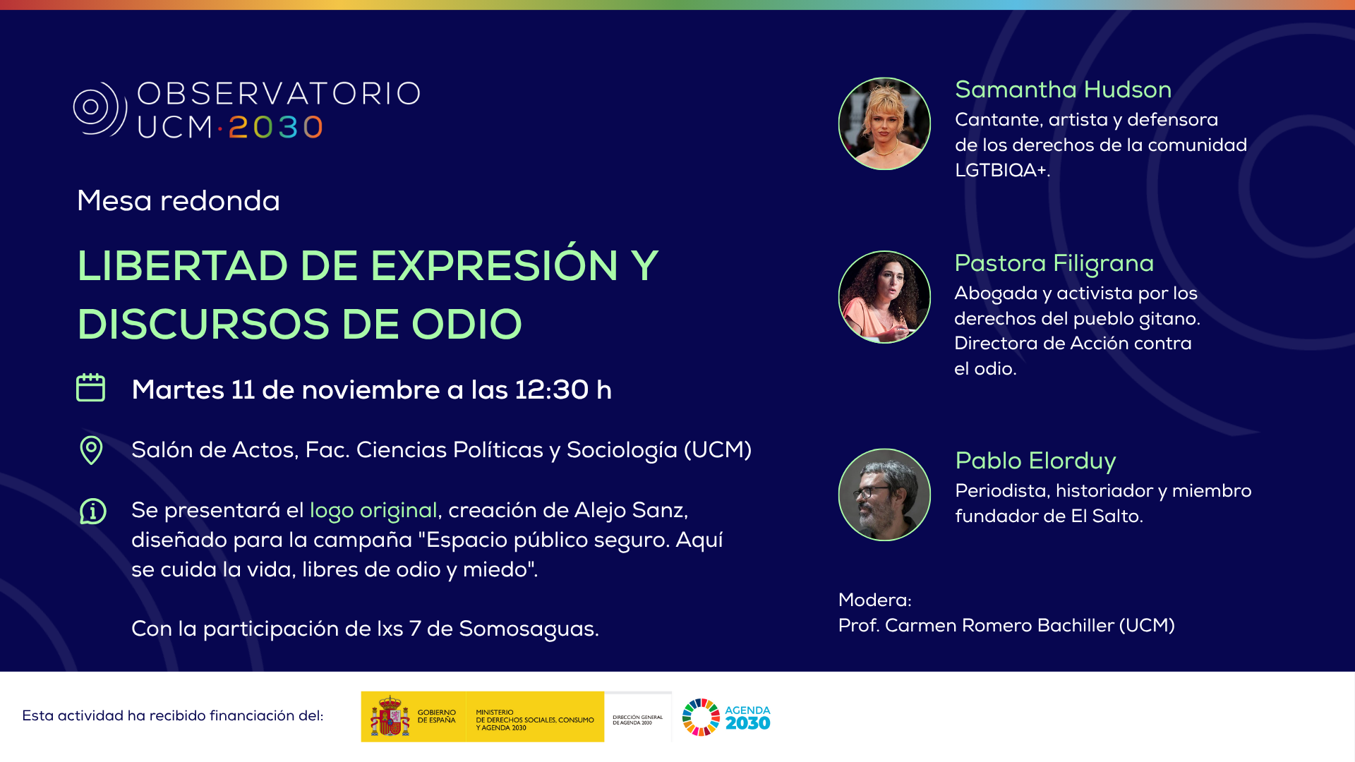 El próximo martes te invitamos a esta mesa redonda sobre libertad de expresión y discursos de odio que organizamos desde el Observatorio UCM 2030.